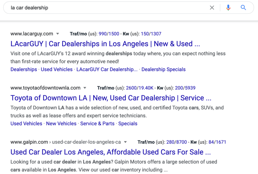 For instance, if you sell cars in Los Angeles, try searching “LA car dealership.”